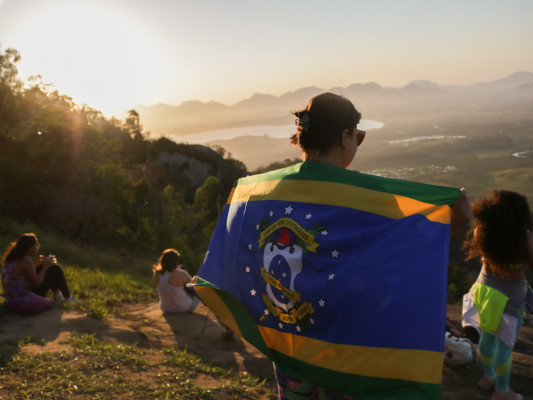 Do alto da Serra do Itaoca, adeptos do Caminha Campos apreciam pôr do sol