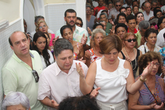 Rosinha e o deputado federal Garotinho foram pontuais e, assim que chegaram, foram direto para a igreja, que lotou. O casal orou junto, cantou cânticos de louvor a Jesus e acompanhou a homília proferida por padre Romero. Depois, em entrevista, a prefeita deixou mensagem de fé para a população da Baixada Campista e demais moradores de Campos. Doutor Chicão, devoto de Santo Amaro, esteve ao lado do casal todo o tempo.