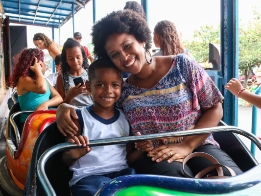 Crianças da rede municipal se divertem pela primeira vez em parque de diversões