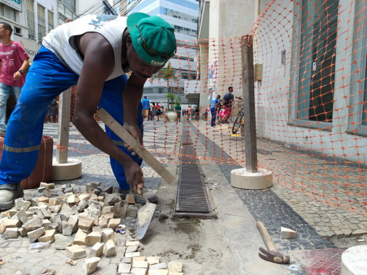 Neste ano, entre as ações do Viva o Centro, foram realizados o assentamento de pedras no calçadão, instalação de 14 bicicletários na região, cada um com 20 vagas.