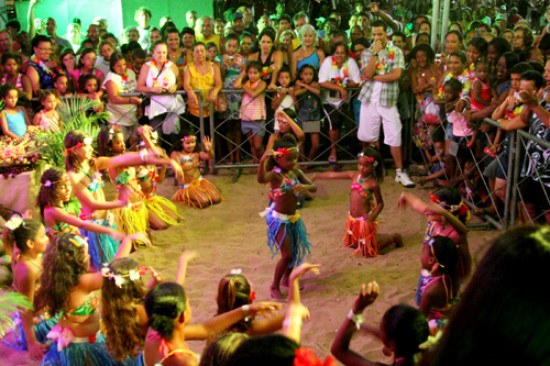 Uma das atividades realizadas pelas crianças são confecções de fantasia de havaiana. “Antes da apresentação dos cantores regionais, elas apresentam um número de dança havaiana com as roupinhas confeccionadas por elas mesmas”, relatou a coordenadora de animação cultural, Luana Dias.
