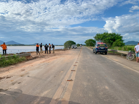 Equipes atuaram para evitar que água do Rio Muriaé ultrapassasse para o lado oposto da BR-356, onde fica a localidade de mais de 4 mil habitantes.