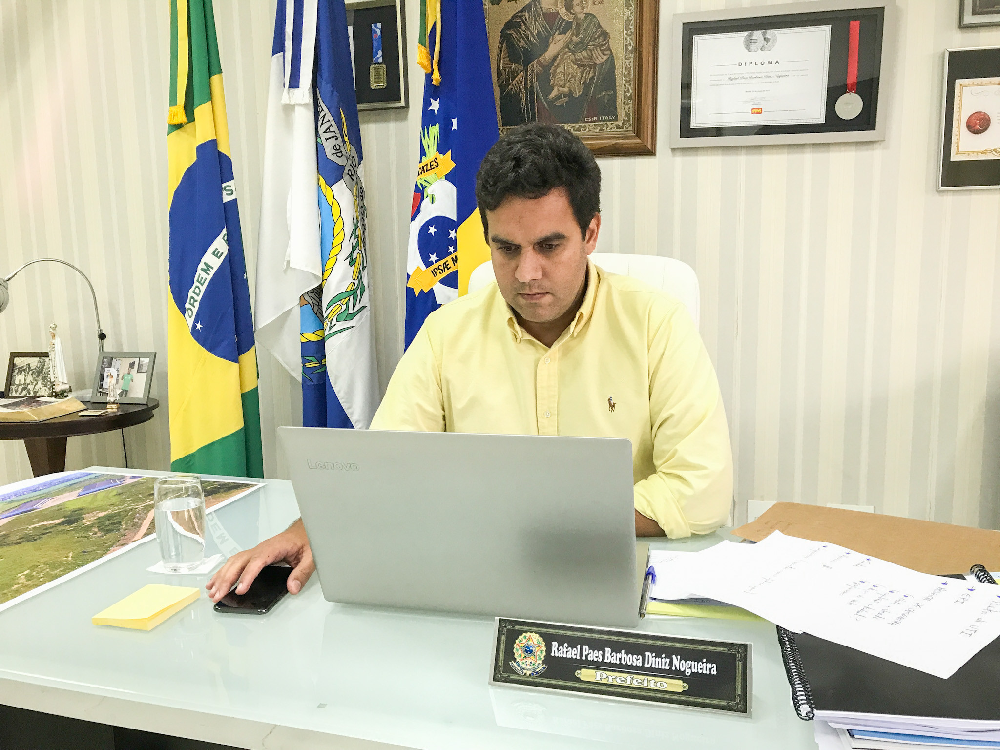 O prefeito Rafael Diniz participou na tarde desta segunda-feira (30), do gabinete da Prefeitura, de reunião com o governador do Rio, Wilson Witzel, por videoconferência. Em pauta, o hospital de campanha anunciado pela Secretaria Estadual de Saúde a ser instalado em Campos, para atender pacientes com a Covid-19. Prefeitos do Norte e Noroeste Fluminense também participaram da videoconferência.