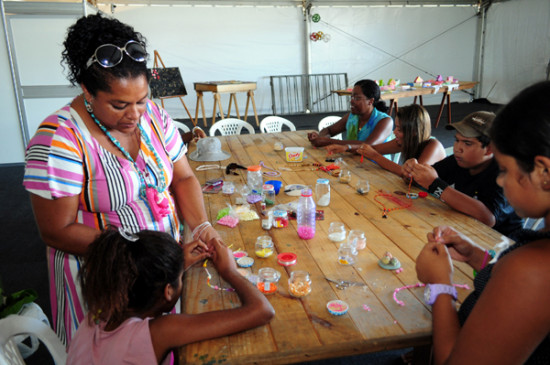 Uma atividade divertida e animada tomou conta da manhã deste sábado (29), da Tenda Cultural, na praia de Farol de São Tome. Trata-se da oficina de confecção de colares. Durante as atividades, crianças e adultos aprenderam como confeccionar diversos colares usando miçangas de diferentes cores. O evento faz parte da programação cultural, elaborada pela Prefeitura de Campos, por intermédio da Fundação Cultural Jornalista Oswaldo Lima.