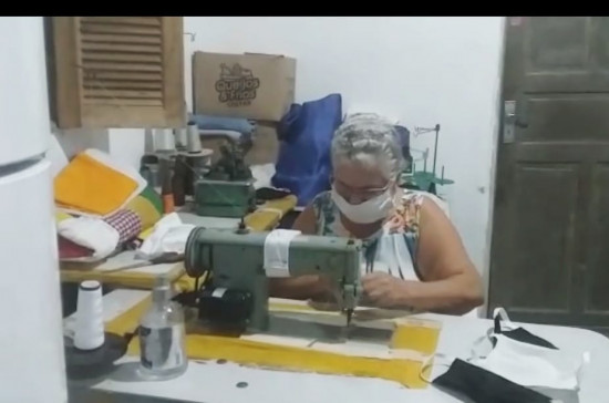 Há uma semana, a costureira Maria da Conceição Rodrigues da Silva está confeccionando máscaras com retalhos de suas costuras e doando aos moradores de Ururaí