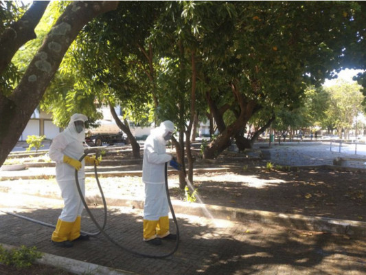 Desde que houve aumento na circulação nos bancos devido ao pagamento de Auxílio Emergencial, a prefeitura inseriu as áreas ao cronograma de higienização. O trabalho é realizado de dia e a noite.