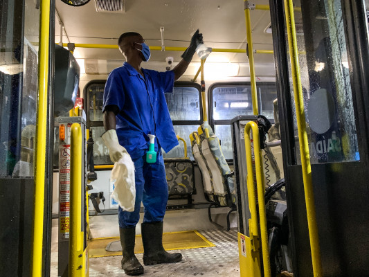 Durante as vistorias são verificados os métodos e produtos utilizados para desinfectar corrimão, balaustre, assentos, vidros e piso dos ônibus, e também é fiscalizado o uso de máscaras pelos funcionários
