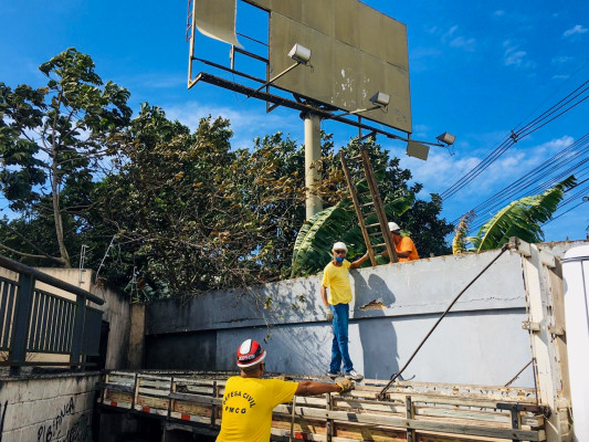Defesa Civil em intervenção na Avenida Nilo Peçanha devido à ventania