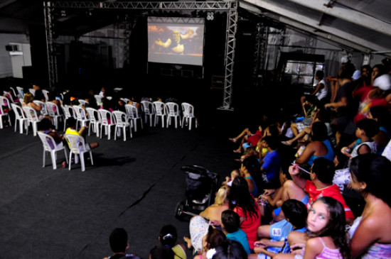 A Tenda Cultural ficou lotada mais uma vez nesta terça-feira (1º) para o Cine Verão da Fundação Cultural Jornalista Oswaldo Lima, que exibiu o filme “Shrek Para Sempre – O Capítulo Final”. Com as arquibancadas e cadeiras lotadas, as pessoas sentaram no chão, o que criou um clima descontraído na Tenda Cultural. Famílias inteiras curtiram o quarto filme que conta a saga do ogro verde. O filme agradou em cheio às crianças, que se divertiram bastante.