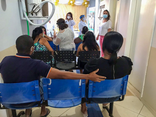 A Unidade Básica de Saúde (UBS) Saturnino Braga foi uma das unidades que receberam a ação nesta semana. Após palestra, participantes tiveram direito a café da manhã. Todos estavam de máscara, respeitando o distanciamento adequado. Também havia álcool gel disponível.