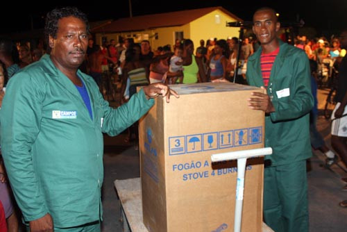 Enquanto ouvia a prefeita, o ajudante de pedreiro Leonardo Costa de Souza, 25 anos, olhava as casas que ajudou a construir. “Comecei a trabalhar no início das obras e ganhei a minha casa. Antes, vivia com minha família na invasão aqui do Parque Prazeres, desempregado, sem água, sem luz, sem banheiro. A casa foi o empurrão para minha família ter segurança”, contou o trabalhador, que comemorou com a esposa Jéssica, 22, e do filho Erick, 4, quando foi sorteado e ganhou também um fogão.