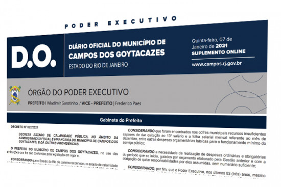 Prefeito Wladimir Garotinho decreta estado de calamidade fiscal e financeira