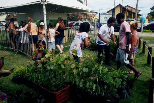 Para complementar as orientações, o funcionário Getúlio Nogueira Silva atendia a todos dando explicações de como fazer o plantio, adubar e regar cada tipo de muda e, ainda, as propriedades terapêuticas da planta, como a carambola, usada para baixar o nível da pressão arterial.