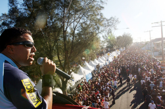 Como falou a jovem, trios elétricos em Farol são tradicionais, funcionam há mais de 15 anos. E entre os artistas que costumam cantar do alto e ser acompanhado por uma multidão está o veterano em trios, Gil Paixão. A banda de Gil contagiou a galera e o cantor mandou uma seqüência de músicas dos grupos Paralamas do Sucesso, Legião Urbana, encerrando com as mais agitadas canções do Araketu.