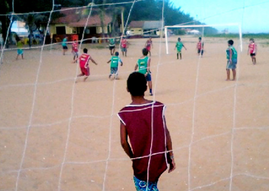 Tem sido grande a frequência da criançada do Farol de São Tomé, na escolinha de futebol de areia que, desde os primeiros dias de janeiro, vem movimentando a área ao lado do estande das secretarias de Meio Ambiente e de Desenvolvimento Econômico e Petróleo, na beira mar da praia campista.