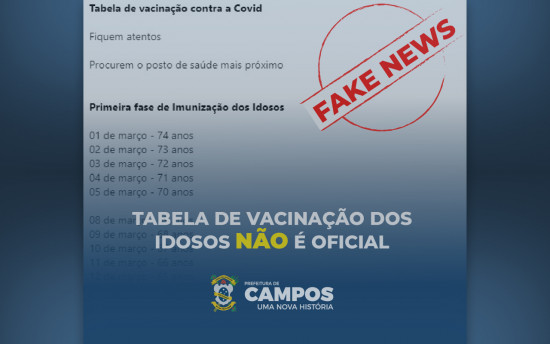 Mais uma fake News sobre tabela de vacinação divulgada em rede social