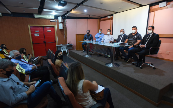 Conduziram a reunião o Secretário de Saúde, Adelsir Barreto, e o Subprocurador Geral, Gabriel Rangel, com a participação de quadros das duas pastas