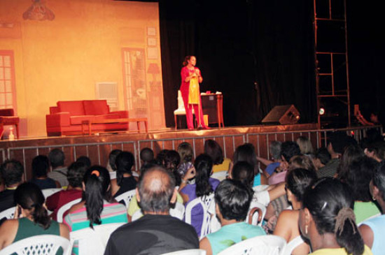 O espetáculo “Friziléia – uma esposa à beira de um ataque de nervos”, com a atriz Elizabeth Savala, foi apresentado na noite desta segunda-feira (08), na Praça do Santíssimo Salvador. “Friziléia” agradou em cheio ao grande público presente, que interagiu com a atriz dando muitas risadas. Elizabeth Savala deu um show de interpretação conduzindo muito bem o espetáculo. O evento, organizado pela Fundação Cultural Oswaldo Lima, fez parte da programação do Dia Internacional da Mulher, da prefeitura.