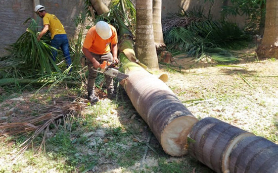Defesa Civil corta palmeira de 15 metros que oferecia risco de cair