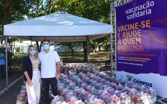 Prefeito e primeira-dama recolhem doações de alimentos da vacinação solidária