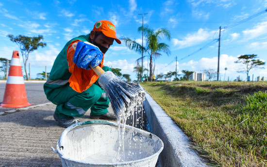 Secretaria de Serviços Públicos realiza pintura de meio fio na Arthur Bernardes