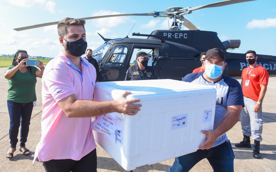 Campos recebeu na manhã deste domingo (25) mais uma remessa das vacinas contra a Covid-19. Os imunizantes, 12.670 doses de Oxford/AstraZeneca e 2.030 doses de CoronaVac, além de medicamentos do chamado "kit intubação" foram recebidos pelo Prefeito Wladimir Garotinho, no Aeroporto Bartolomeu Lisandro. A chegada das vacinas, apesar de ainda não atender a demanda do município, garante a continuidade do calendário de imunização dos idosos e profissionais de saúde, principalmente a retomada da aplicação da 2ª dose CoronaVac, que será através de convocação já nesta segunda-feira (26).