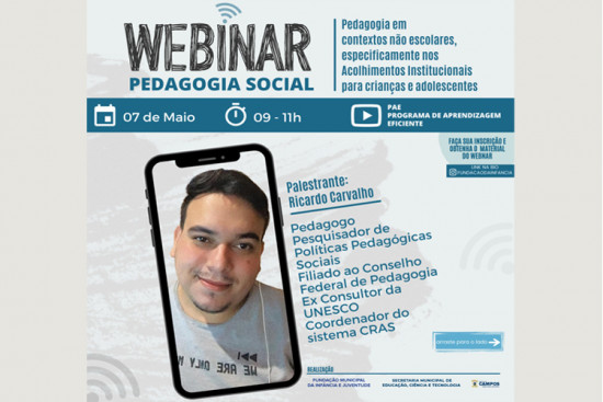 O palestrante será o pedagogo e pesquisador Ricardo Carvalho, ex-consultor da Unesco. O webinar será transmitido pelo YouTube, no canal do Programa de Aprendizagem Eficiente (PAE).
