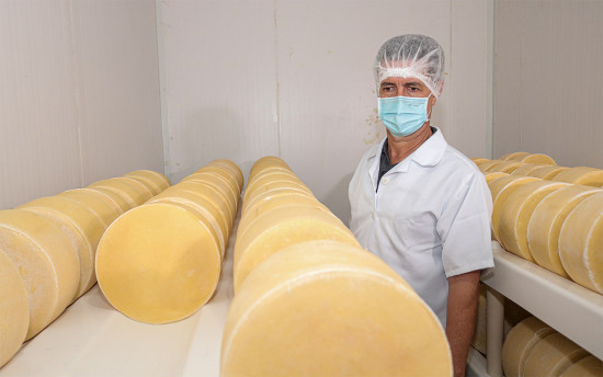 “Fabrico queijo há 17 anos, porque comecei ajudando meu pai para nosso consumo. Há cerca de 10 anos percebi que, em vez de vender o leite, o queijo agrega mais valor. Procurei legalizar a produção para atender a legislação e recebi as orientações dos técnicos da Secretaria de Agricultura e da Vigilância Sanitária e hoje eu processo todo leite da propriedade e compro de outros produtores. Agora na entressafra do leite as vacas reduzem a produção, mas é no inverno que as búfalas produzem mais leite. Na entressafra fabrico 190 quilos de queijos por dia e na safra do leite 300 quilos. Tenho seis funcionários na produção e cinco na venda e em vez de vender o litro de leite por R$1,74 para os grandes laticínios, processo e tenho ganho em torno de 50% no litro”, relatou Paulo Sérgio, que produz 600 litros de leite de búfala e 1.000 litros de leite de vasca/dia.