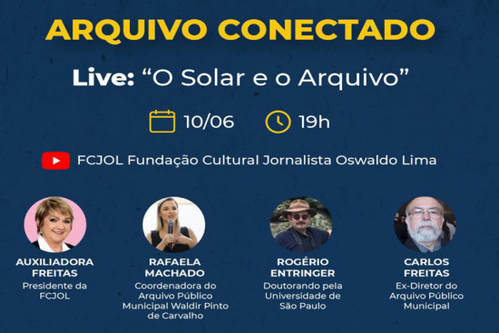 Encontro acontece às 19h, no canal “FCJOL Fundação Cultural Jornalista Oswaldo Lima”, no youtube