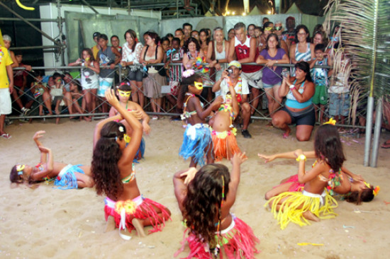 Toda a estrutura montada nas festas anteriores, organizadas pela Secretaria Municipal de Educação, foi mantida com a apresentação das havaianas mirins, que apresentaram a arte da dança nas oficinas realizadas no local, bem como vestiam roupas confeccionadas por elas mesmas neste período. Depois, foi a vez das havaianas se apresentarem e brindarem o público com frutas da estação, o que mais uma vez fez o público delirar na Arena de Esportes.
