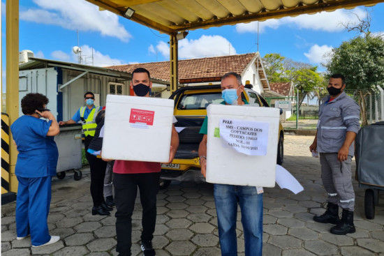 As vacinas que chegaram foram 3.720 doses da Pfizer e 2.460 doses da AstraZeneca