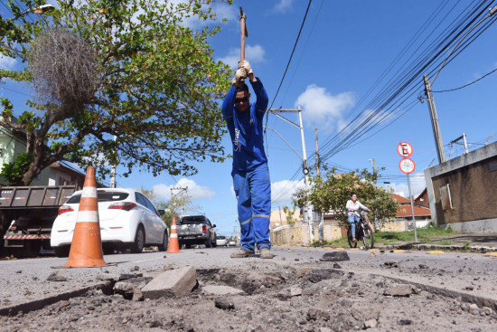 Prefeitura recupera pavimentação de vias nos bairros Tarcísio Miranda e Jóquei
