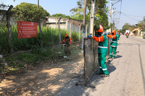Outras equipes estão no Parque Julião Nogueira com pintura de meio-fio e ainda em Farol de São Thomé