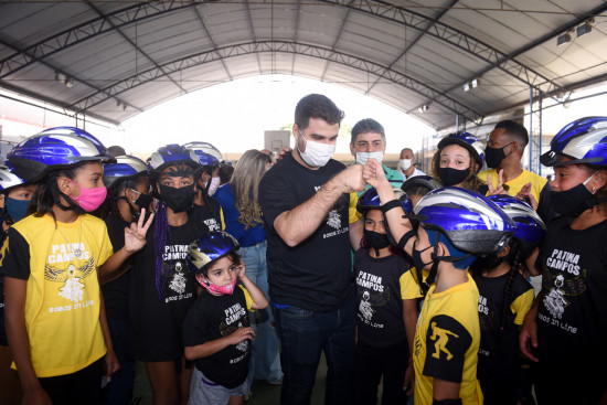 Cerca de 30 alunos do projeto Patina Campos, de Ururaí, fizeram uma demonstração de algumas técnicas dos patins