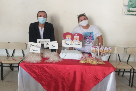 Em comemoração ao mês do idoso, os orientadores sociais organizam uma mesa com uma lembrancinha e um lanche embalado para cada idoso que, em horário agendado, comparece no CRAS