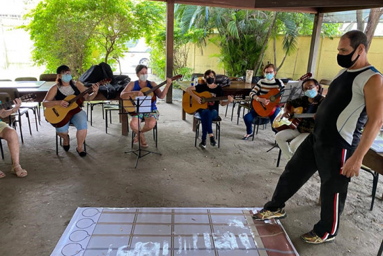 O número reduzido por turma se deve às restrições em virtude da pandemia da Covid-19, que ainda impõe cuidados como uso de máscara, álcool em gel e distanciamento social, além da apresentação do cartão de vacinação. As aulas são ministradas pelo professor Luiz Fernando Rocha, Mestre em Ensino de Música pela Universidade Federal do Estado do Rio de Janeiro (UNIRIO).