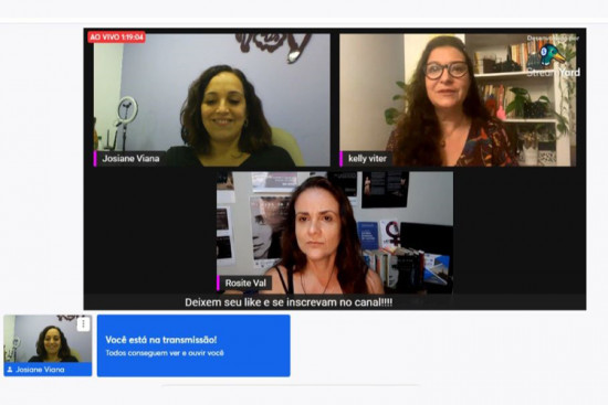 A subsecretária de Políticas para Mulheres, Josiane Viana, e a presidente da OAB Mulher – Campos-RJ e coordenadora da Diretoria de Mulheres da OAB-RJ, Kelly Viter, participaram, nesta quarta-feira (03), do debate “Violência contra a Mulher”, mediado pela atriz e diretora, Rosite Val. O debate aconteceu no canal “Mujeres de Arena RJ” no YouTube, logo após ao espetáculo "Mujeres de Arena - um grito contra os feminicídios”, do Raver Coletivo Teatral, também exibido de forma remota. O espetáculo foi contemplado no Edital Retomada Cultural da Secretaria de Estado e Economia Criativa do Rio de Janeiro (Sececrj), através da Lei Aldir Blanc.