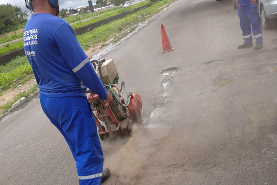 A Secretaria de Obras e Infraestrutura iniciou serviços da Operação Tapa Buracos na via de acesso do Parque Julião Nogueira à Avenida Sílvio Bastos Tavares, situada entre o Shopping Boulevard e o Shopping Saara