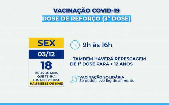LOCAIS DE VACINAÇÃO DA 3ª DOSE PARA PESSOAS COM 18 ANOS OU MAIS: