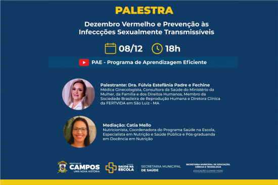 Palestra com a Consultora da Saúde do Ministério da Mulher, da Família e dos Direitos Humanos e diversos serviços gratuitos serão ofertados pelo Programa Saúde na Escola
