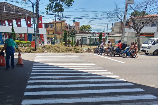 Equipes do órgão reforçaram a pintura da faixa de pedestres para garantir mais segurança aos pedestres para terem acesso ao equipamento esportivo. A Vila será reinaugurada nesta quinta-feira (16)