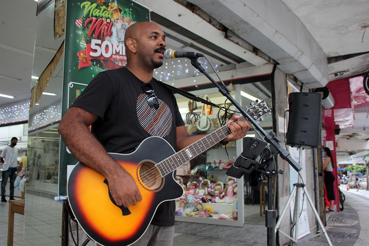Além do Presépio Vivo, apresentação do músico Tiago Barbosa foi realizada na tarde desta sexta-feira (17), no Centro de Campos