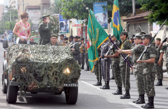 A Prefeita Rosinha Garotinho na abertura do desfile cívico-militar, durante revista às tropas na Avenida 28 de Março. A solenidade faz parte da programação pelos 176 anos de elevação de vila à cidade de Campos. A solenidade começou com hasteamento das Bandeiras Nacional, de Campos e do Estado do Rio. O desfile foi aberto pelos Ex-Combatentes, seguido pelo Exército. O desfile está tendo a participação da Polícia Militar, Corpo de Bombeiros, Exército, Guarda Municipal, além de representações de todas as secretarias municipais e escolas particulares. A concentração do desfile aconteceu nas proximidades do Campo do Americano.