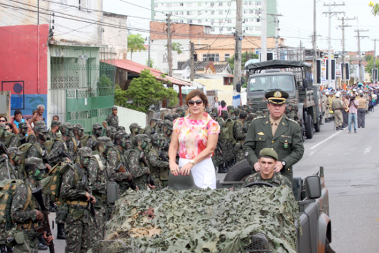 O 56º Batalhão de Infantaria foi o primeiro a desfilar, com a participação de uma representação dos ex-combatentes da Segunda Guerra Mundial, que desfilou em carro aberto; 5º Grupamento de Bombeiro Militar, Guarda Municipal e Polícia Militrar. As cooporações apresentaram suas viaturas, como as motos, bicletas e os quadricíclos da Guarda Municipal, que atuaram durante o Verão da Família, no Farol de São Tomé.