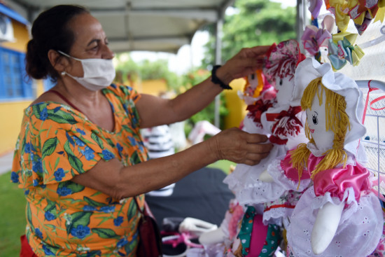 Espaço da Economia Solidária com artesanato e oficinas no Farol