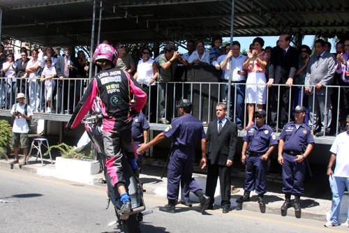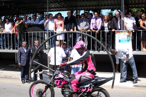 Logo na abertura do desfile, um show de esportes radicais, com os karts e motos, que disputam competições regionais, com o apoio da Fundação, e uma apresentação especial da Equipe Sem Limites, que fez malabarismos em frente ao palanque oficial, com a apresentação do já consagrado Loro Jhow, que de Campos, já ganhou prestígio em nível nacional.