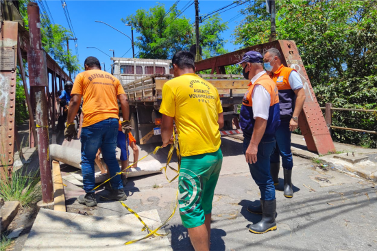 Defesa Civil faz desinterdição da ponte Barcelos Martins