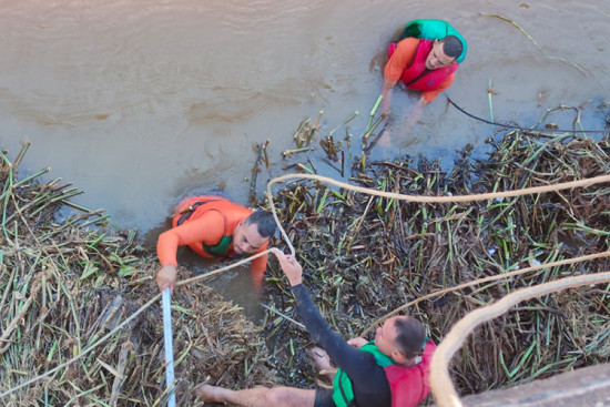 Segurança - A baixa do nível do rio Paraíba do Sul (7,60 metros às 7h desta terça-feira) permitiu a realização do trabalho. Por medidas de segurança, a retirada da vegetação só pode ser feita depois que o nível do rio está abaixo dos 9 metros.