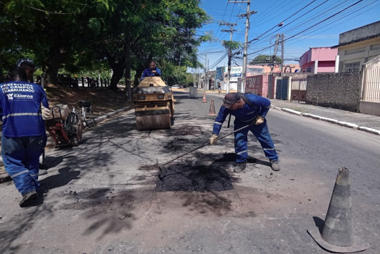 Passados os dias de chuvas, reparos na pista da Avenida Nelson de Souza de Oliveira (margem direita do Paraíba) estão sendo realizados