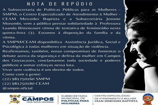A subsecretária de Políticas para Mulheres, Josiane Viana, também prestou solidariedade e colocou os equipamentos de enfrentamento à violência contra a mulher à disposição